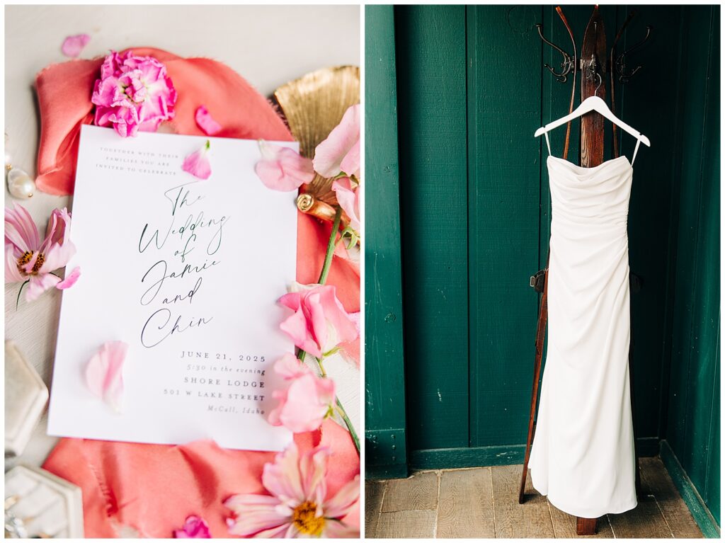 Jamie and Chin’s mid-June wedding at Shore Lodge in McCall, Idaho was nothing short of beautiful, even if the weather gave us a little run for our money!